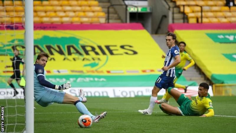 Daniel Farke หัวหน้า Norwich บอกว่ามันเป็น "ไม่สมจริง" ที่จะพูดคุยเกี่ยวกับการหลีกเลี่ยงการตกชั้นจากพรีเมียร์ลีกหลังจากที่พ่ายแพ้ในบ้านเมื่อวันเสาร์ที่ไบรตัน ผู้เล่น Canaries ดูพังทลายในเวลาเต็มเนื่องจากความสำคัญของผลที่เกิดขึ้นที่บ้าน - โดยทอดด์คานท์เวลล์ยังคงอยู่ในสนามเป็นเวลา 10 นาทีหลังจากการเป่านกหวีดสุดท้าย ในขณะที่ผู้ชนะของ Leandro